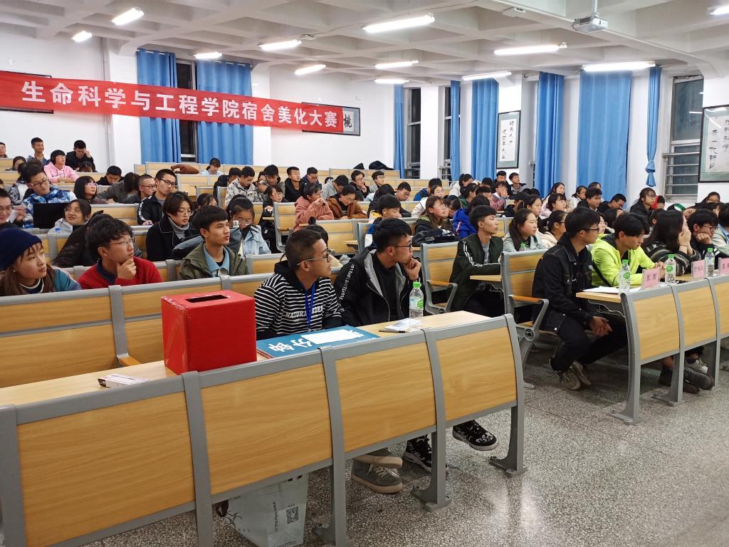 為提升學生宿舍文化品位,陶冶高尚情操,營造良好的學習生活氛圍,豐富課余生活。11月12日晚,生命科學與工程學院在彭家坪校區集賢樓206教室舉辦新生宿舍美化大賽決賽答辯。