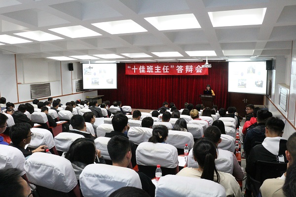 11月12日下午,學校在彭家坪校區尚學樓204教室舉行2018-2019學年“十佳班主任”答辯會,學生工作部相關負責人和各學院副書記擔任教師評委,來自各個學院的70名學生評議員擔任學生評委,教師評委和學生評委的分值各占50%。答辯會由學工部部長孫偉國主持。