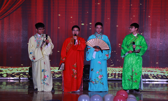 迎新晚會在蠻不綽樂隊的精彩表演中拉開帷幕,緊接著的杯子歌《稻香》,熟悉的旋律用一種特殊的方式來呈現,體現出了文學院學生的與眾不同。聲情并茂的朗誦《鋼鐵》贏得了臺下此起彼伏的掌聲。文學院的相聲《四大才子》將晚會推向了又一個高峰,他們妙語連珠的表演贏得了觀眾的掌聲,雅俗共賞中透露著文學的氣息。晚會隨著2019級全體學生合唱《夜空中最亮的星》落下了帷幕。