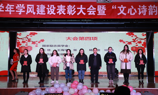 表彰會上,張維權宣讀了先進個人與先進集體的表彰決定,代表全院師生向獲獎的集體和個人表示祝賀。隨后,出席大會的領導、老師為獲獎同學頒獎,激勵他們再接再厲,積極發揮自身優勢及模范帶頭作用,為學院的學風建設工作添磚加瓦。頒獎結束后,2018級張麗榮同學代表先進個人發言。