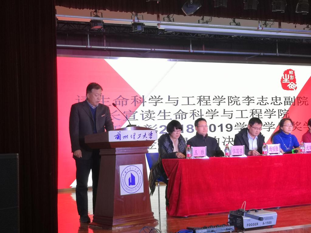 表彰大會在隆重的國歌中開始。正值南京大屠殺死難者國家公祭日,牢記歷史,勿忘國恥,悼念南京大屠殺死難者,悼念所有慘遭日本侵略者殺戮的死難者,緬懷為中國人民抗日戰爭勝利獻出生命的革命先烈和民族英雄,全場默哀一分鐘。隨后,李鵬遠致辭,對生命學院取得的成績表示肯定。各位領導宣讀了相關表彰文件并對獲獎集體和個人頒獎,2017級制藥一班廖璇同學代表獲獎同學發言,寄語新生,不負韶華。宣讀生命科學與工程學院《誠信考試倡議書》,倡議誠信考試,嚴肅考風考紀。學院黨委書記陳永泰用“師說”向同學們保證學院和老師將用百分百的付出,培養百分百的人才,希望同學們愛學院、愛專業、愛學校、愛祖國。
