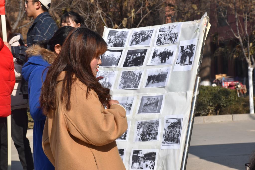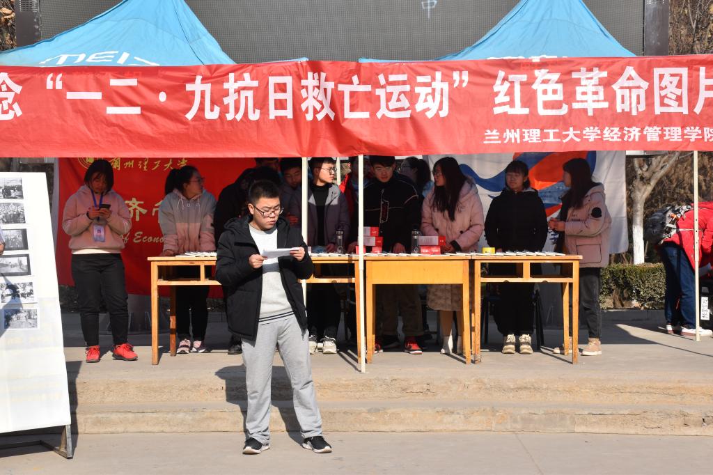 2019年12月9日蘭州理工大學經濟管理學院在西校區紅柳廣場舉行“一二·九抗日救亡運動”紅色革命圖片展活動。