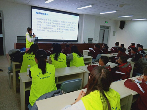 2019年11月26日和12月3日,蘭州理工大學蘭蓮花志愿者服務中心、外國語學院團委學生會走進附屬中學,開展了兩次以“大手拉小手,爭做環保小衛士”為主題的首屆“綠色引航”全國中小學環教行動。