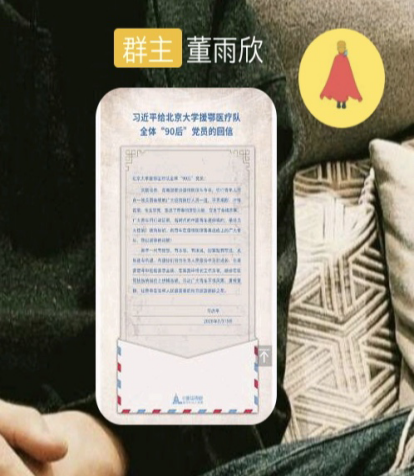 活動以線上會議為載體,各支部成員學習了《習近平總書記給北大援鄂醫療隊全體“90后”黨員回信》。習近平總書記回信的一字一句,展現著開拓治國理政的新境界,形成了一系列高瞻遠矚的青年工作新思想新觀點,深刻體現了中國共產黨人的青年觀。新時代的青年不僅要有仰望星空的情操,更要有腳踏實地的努力。立足崗位,扎根基層,把崗位和基層作為干事創業的基礎和平臺。一步一個腳印,埋頭苦干、實干,耐得住寂寞、守得住清貧,用實際行動編寫青春靚麗篇章。與此同時,不少同學發出感悟感悟,向北大援鄂醫療隊全體“90后”黨員學習,勇于擔當,敢于沖鋒在前線。