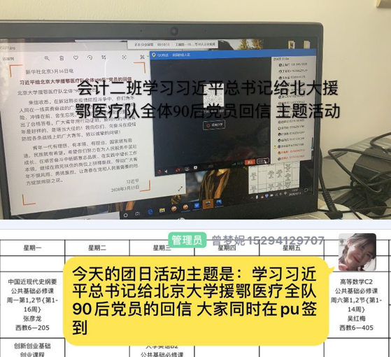 4月13日至4月17日,經濟管理學院各團支部相繼開展了《習近平總書記給北大援鄂醫療隊全體“90后”黨員回信》主題團日活動。