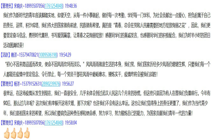 同學(xué)們堅(jiān)信,經(jīng)過抗“疫”戰(zhàn)火淬煉的中國(guó)青年,一定能不懼風(fēng)雨、勇挑重?fù)?dān),在黨和人民最需要的地方綻放出更加絢麗的青春光芒!