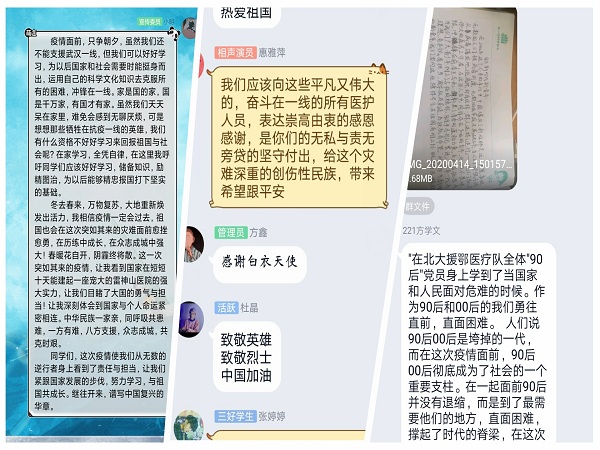 2020年4月10日,電信學院組織學院各團支部線上學習《習近平總書記給北京大學援鄂醫療隊全體90后黨員重要回信》精神,把制度自信的種子播撒進青年學生的心靈。學院各基層團支部共兩千余名團員青年參與學習和討論。