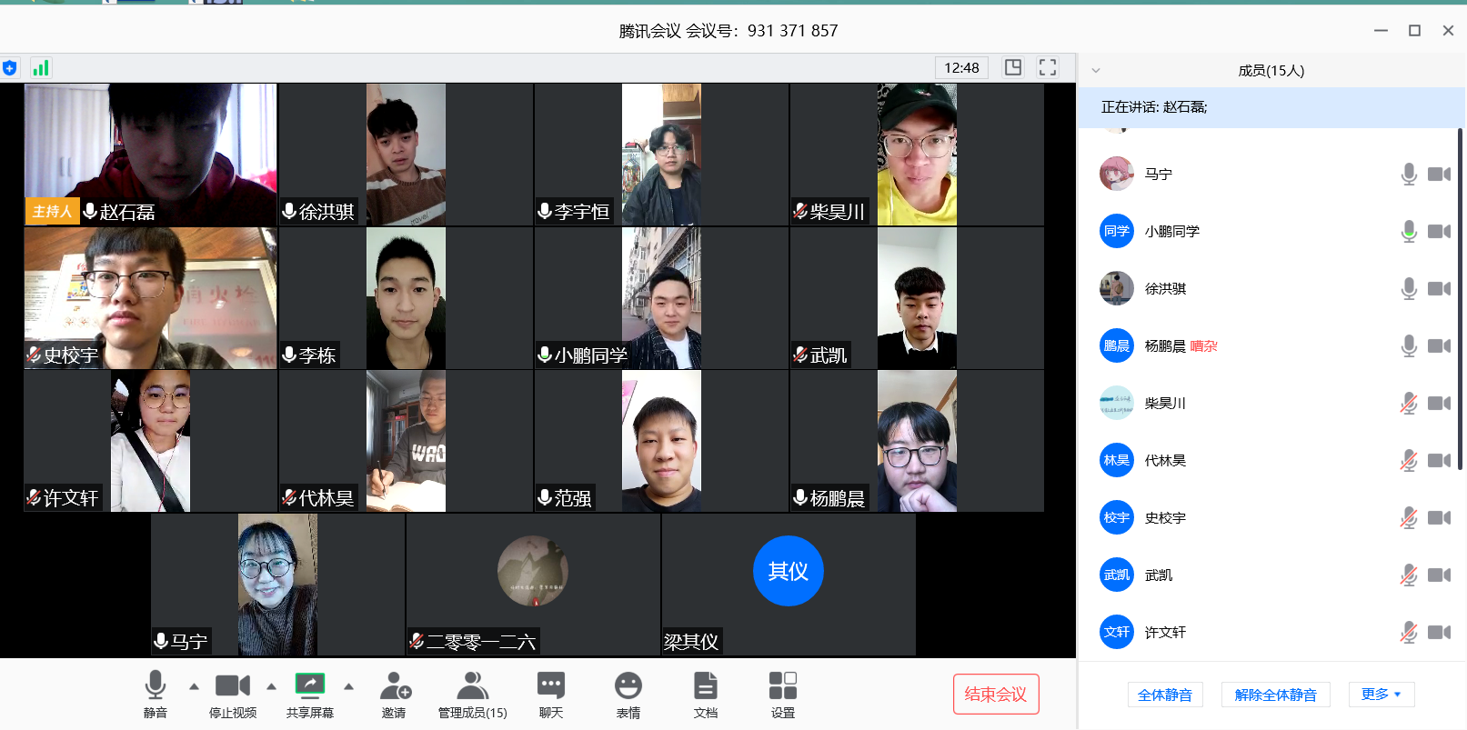 2020年4月12日下午,電信學院團委組織學院團學干部在線上共同學習《習近平總書記給北大援鄂醫療隊全體“90”后黨員回信》,習近平總書記的回信精神讓參與學習的廣大團學干部們倍感振奮、備受鼓舞,是對廣大青年奮力奪取疫情防控和實現中華民族偉大復興的極大鼓舞,也是對新時代青年樹立遠大理想、熱愛偉大祖國、擔當時代責任、砥礪奮斗、煉就過硬本領、錘煉品德修為的諄諄教誨。鼓舞大家以實際行動,為祖國的發展和學校的團學工作貢獻青春活力。學習結束后,參會人員就本次學習內容及防疫阻擊戰展開交流,分享學習心得。