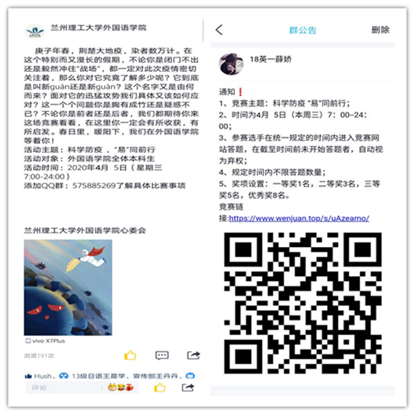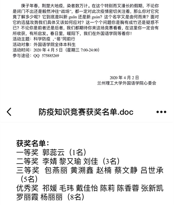 4月5日,外國語學(xué)院心委會和易班中心于共同開展了“科學(xué)防疫‘易’同前行”線上防疫知識競賽活動。