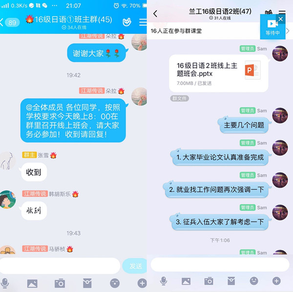 “同學們,你們好!非常高興在這個特殊時期能夠與大家‘云端’相聚……”。在“云端”,外國語學院的班主任們正用暖心話語正向同學們隔空傳遞,全程與同學們互動交流,而電腦的另一端,學生們也互相用彈幕、留言、表情表達思念的問候——一場場特殊的“云端”班會正在精彩地進行。