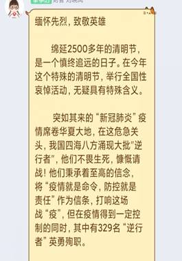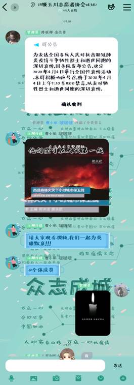 忍降國旗掛半空,悲心十億九州同。4月4日,庚子年清明節(jié),蘭州理工大學玉川志愿者協(xié)會與全國各族人民一道,深切悼念犧牲在抗擊新冠肺炎疫情第一線的英雄和烈士們,在線上舉辦了“緬懷先烈,致敬英雄”的活動,玉川志愿者協(xié)會全體成員參加。
