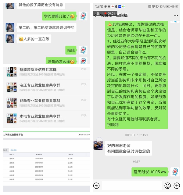 學院就業工作運用學校就業信息網、就業干部微信群、QQ群、未就業學生微信群等技術手段,打造“一生一策、點對點”精準化信息服務矩陣,實現“線上+線下”相結合的全方位就業指導服務,打通學生步入職場的“最后一公里”。
