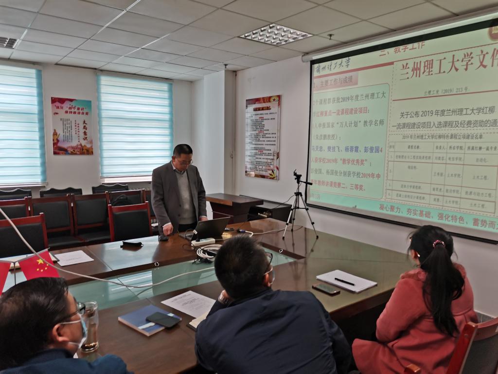 2020年3月24日下午,土木工程學院在蘭工坪校區學院會議室召開了第三屆五次教職工大會,會議通過教代會代表現場會議+視頻會議模式舉行。會議由學院黨委書記田治學主持。