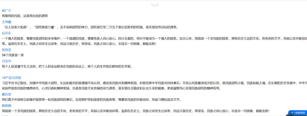 在主題班會上,各位同學積極發言,有的同學積極分享在抗疫中如何以身作則、起模范表率作用的,也有講述學生個人主動參與到社區抗疫志愿服務的,還有反映西藏、學校附屬醫院支援武漢的感人事跡,從不同的切入點將個人在疫情防控中所見所聞所感記錄下來,通過文字描述出抗擊疫情中各民族團結互助、共克時艱,表達了大學生凝聚青春力量助推“中國夢”實現的美好愿望。