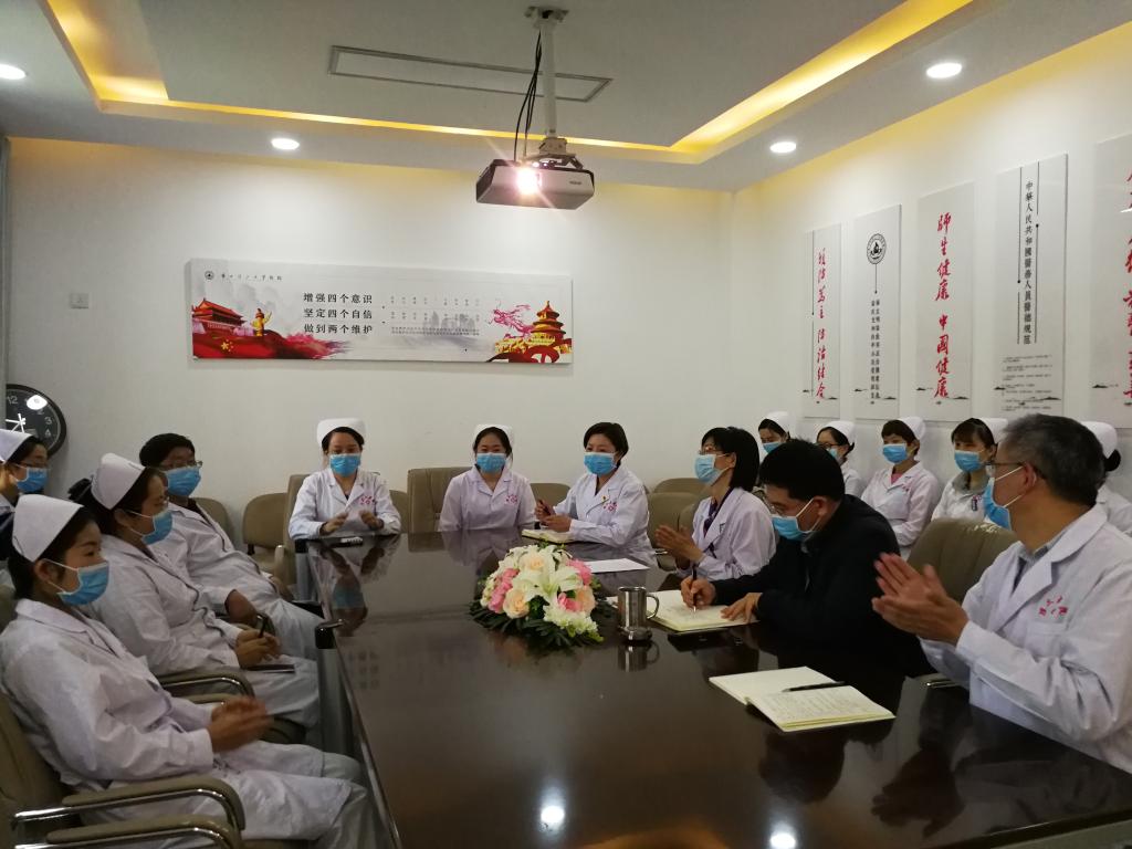 院長楊曉華傳達了習近平總書記代表黨中央向全國廣大護士致以節日祝賀和誠摯慰問的指示精神,學習了甘肅省衛生健康委員會致全省廣大護理工作者的一封信,代表醫院充分肯定了校醫院護理人員在疫情防控工作中的不懈努力和辛勤付出,并向全體護理人員致以節日的問候和崇高的敬意。