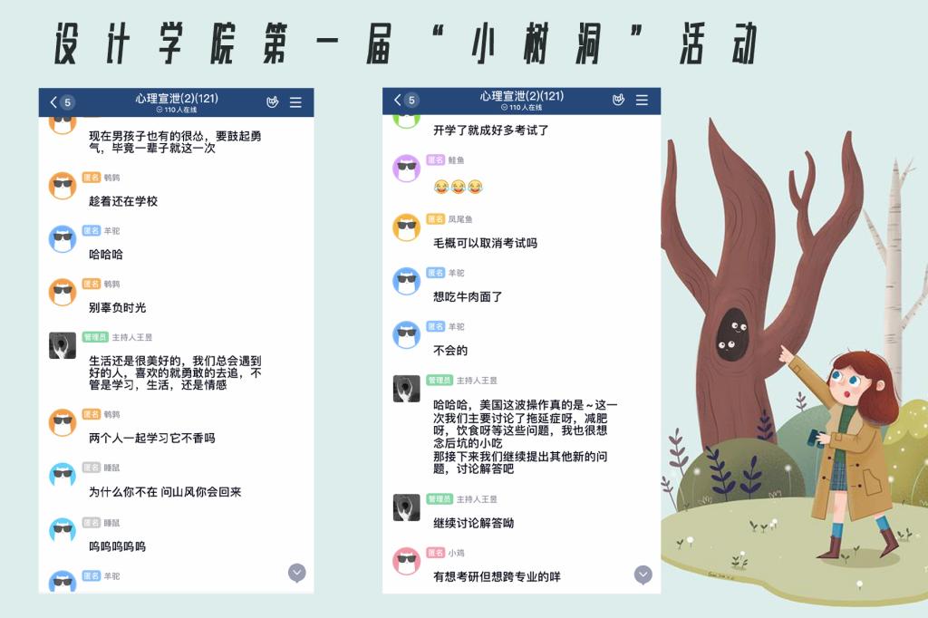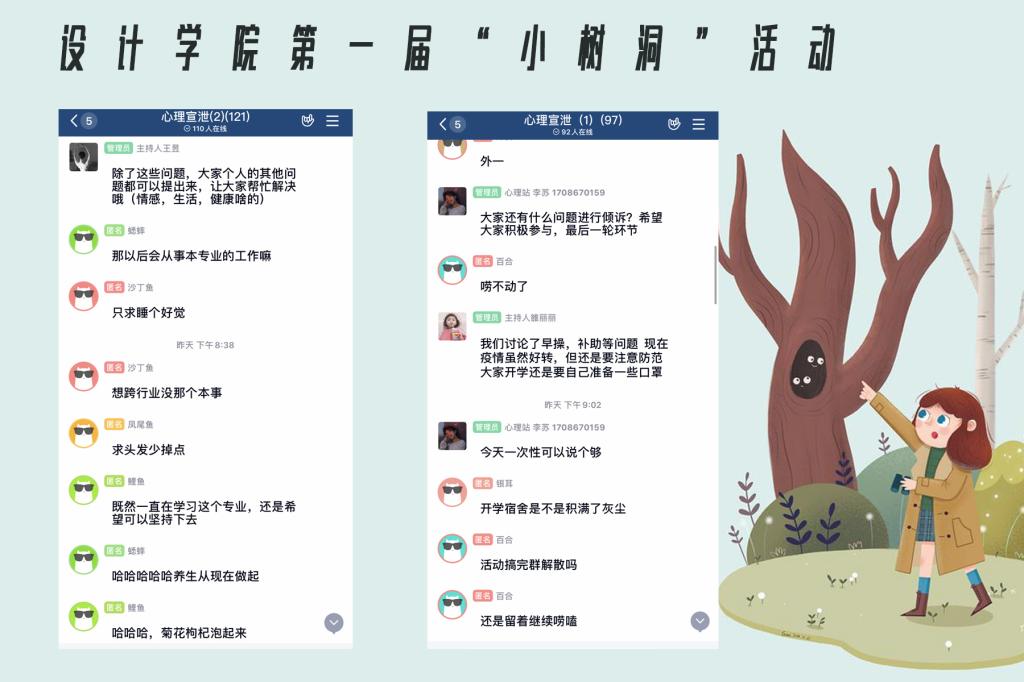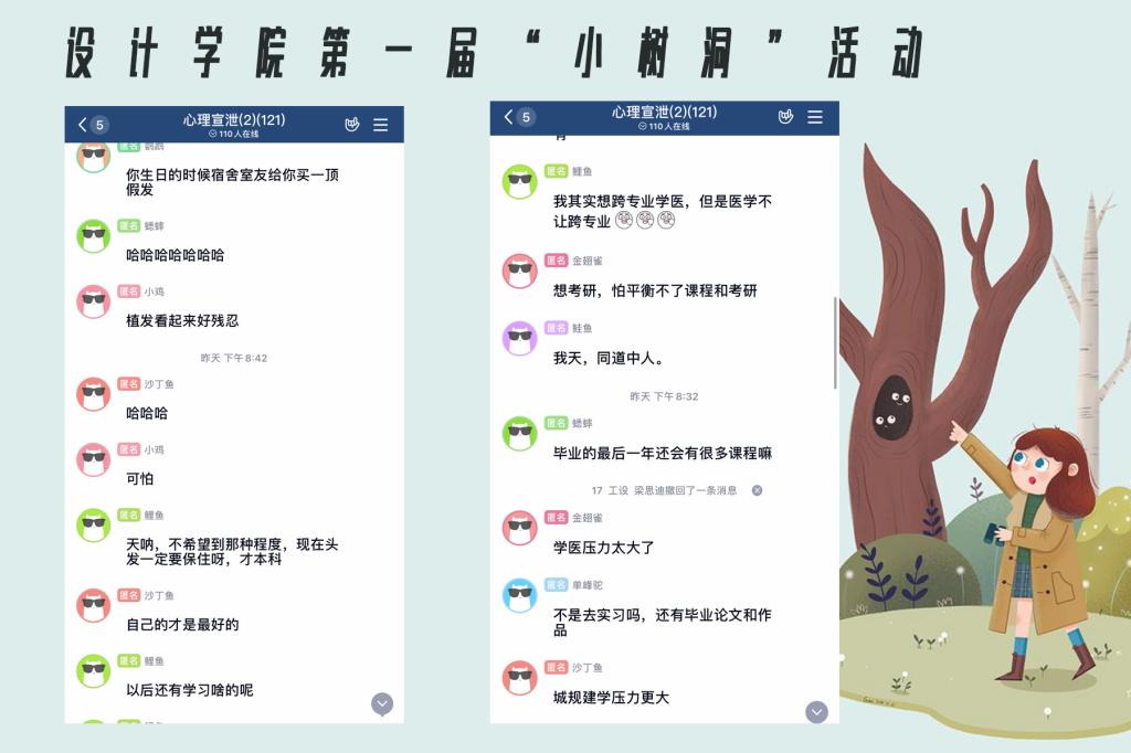 近日,為了針對新冠肺炎疫情期間學院學生的心理變化,進行情緒宣泄和自我調適,引導學生積極應對疫情影響的不良情緒,確保學生心理健康,提高心理免疫力,學院心理健康輔導站在“心理發泄日記”活動的基礎上,優化活動環節,保護學生隱私,真正做好助人自助,舉辦第一屆“小樹洞”心理健康活動。