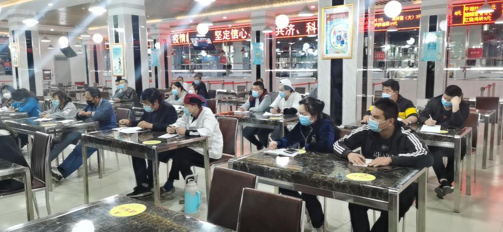 本次培訓包括食堂就餐方案、食品安全管理,餐廳消毒管理,人員健康管理,應(yīng)急預案五個方面的內(nèi)容。重點對新冠病毒日常防控要點進行了梳理,一是把從業(yè)人員管控作為重要內(nèi)容,嚴格執(zhí)行日報告制度,落實員工晨檢工作,并現(xiàn)場演示口罩規(guī)范佩戴方式和手部消毒方法,提醒員工戴口罩、勤洗手、少聚集;二是把環(huán)境消毒、通風作為重點,從區(qū)域消毒管理、各環(huán)節(jié)消毒方式、84消毒液的配制比例、消毒頻次、通風管理等進行了現(xiàn)場指導;三是規(guī)范食品操作流程,要求上崗操作全程佩戴口罩,食材嚴格把關(guān),加工中生熟分離,色標管理有序,操作環(huán)境衛(wèi)生,食物燒熟煮透等。