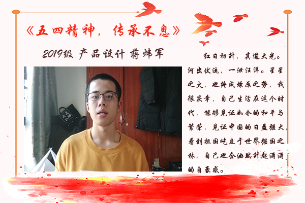 5月3日,在五四青年節來臨之際,設計藝術學院團委組織開展了“五四精神,傳承有我”為主題的線上演講比賽。比賽分初賽和決賽,共有17名同學進入決賽。