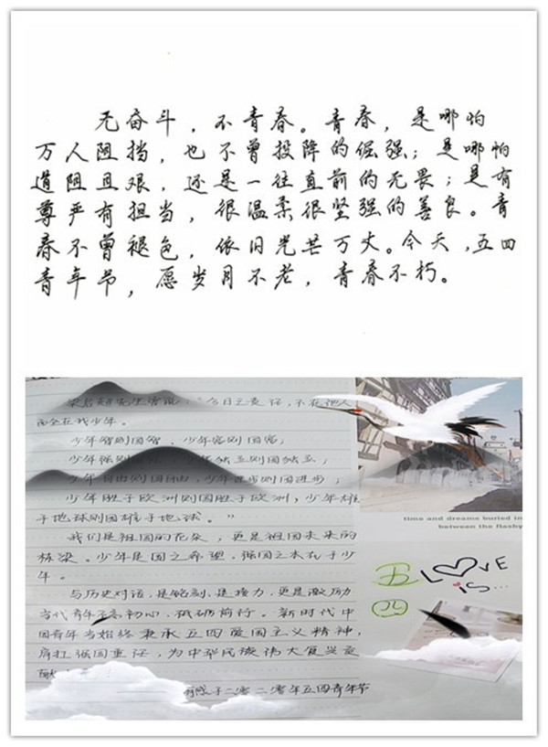 同學們用文字內容表達了對青春的寄語與祝福,圍繞五四運動、社會正能量、青春感悟及在此次疫情當中感想體驗等內容,展現了新一代青年人積極樂觀、昂揚向上的精神風貌。