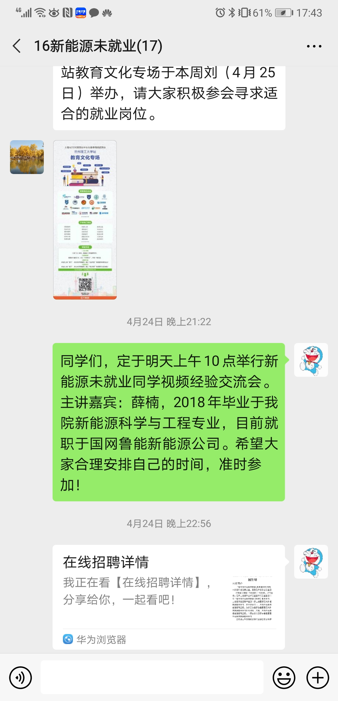 薛楠同學結合自己在大學的求職經歷和畢業后兩年內在國家電網魯能集團的工作經歷為同學們做了擇業指導與職業生涯規劃專題輔導。她認為,學弟學妹們在求職過程中一是要明確求職目標,合理定位自己,針對目標崗位制作與之匹配的簡歷,以便于通過HR簡歷初選,爭取更多的面試機會;二是要建立自信心,充分做好面試的準備,在每一次面試中及時總結經驗,方能取得最終勝利;三是要明確工作與職業的關系,樹立先就業在擇業的理念,大學生的第一份工作并不能代表終身的職業,步入職場后任何崗位都需要不斷的學習。班主任張學民老師提出,今年就業形勢非常嚴峻,希望未就業同學要調整求職目標,利用好學校和學院推送的求職信息,樹立先就業在擇業的理念,盡快找到適合自己工作。