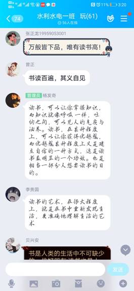 活動(dòng)中講述了世界讀書(shū)日的由來(lái)及節(jié)日存在的意義,了解了書(shū)籍在人類(lèi)社會(huì)發(fā)展中的重要意義及自身演化過(guò)程,特別是共產(chǎn)黨領(lǐng)導(dǎo)中國(guó)社會(huì)革命的艱難歲月中,書(shū)籍的珍貴和知識(shí)帶來(lái)的力量。同時(shí)大家發(fā)言交流個(gè)人讀書(shū)體會(huì),并向大家推薦自己認(rèn)為有閱讀價(jià)值的國(guó)學(xué)經(jīng)典書(shū)籍。同學(xué)們表示,他們將珍惜來(lái)之不易的學(xué)習(xí)環(huán)境,認(rèn)真學(xué)習(xí)科技文化知識(shí),在新時(shí)代傳承中華優(yōu)秀傳統(tǒng)文化,并堅(jiān)信書(shū)籍伴隨成長(zhǎng),必定“腹有詩(shī)書(shū)氣自華”。