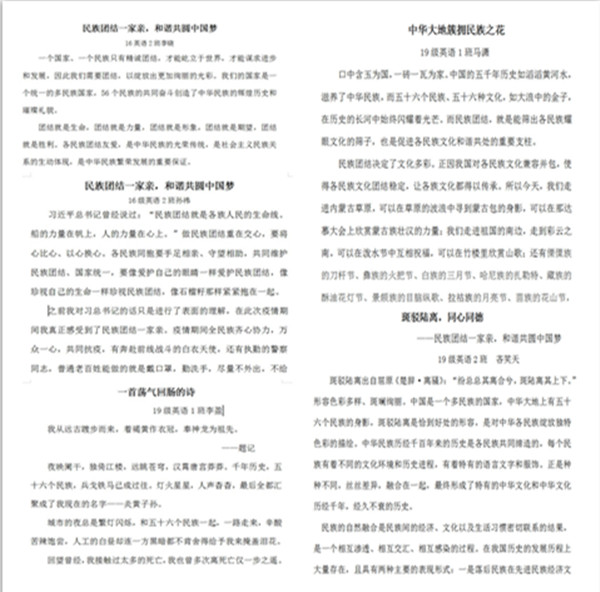 英語本科生黨支部舉辦了以“民族團結一家親,和諧共圓中國夢”為主題的線上征文比賽;日語本科生黨支部舉辦了以“民族團結一家親、同心共筑中國夢”為主題進行線上演講比賽;俄語本科生支部和英語研究生黨支部聯合舉辦了以“鑄牢中華民族共同體意識,努力開創民族團結進步創建新局面”線上民族團結知識競賽活動。各個支部活動主題鮮明,內容積極向上,學生積極廣泛參與,文章記錄了自己眼中的民族故事,以個人獨特的視角闡述了個人對民族團結的理解;聲情并茂的線上演講,字里行間流露出學生們飽滿的熱情和對祖國的熱愛;線上知識競賽準備充分,學生積極作答,比賽場面激烈。