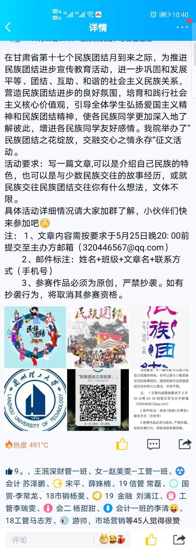 在我省的第十七個民族團結進步宣傳月來臨之際,蘭州理工大學經濟管理學院在線上面向經濟管理學院的全體學生舉行了“民族團結之花綻放,交融交心之情永存”之主題征文活動。