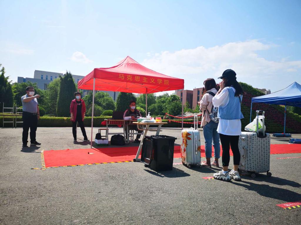 春去夏猶清,學子踏歸程。5月25日,馬克思主義學院迎來了第二批返校的莘莘學子。經過居家隔離,體溫確認符合規定、行程查詢等情況確認后,獲得返校許可的同學,陸續返回學校。在疫情這一特殊時期,為了保證每個同學安全返校,全院師生上下一心,全體聯動,以飽滿的姿態和熱情的服務歡迎學生回“家”。