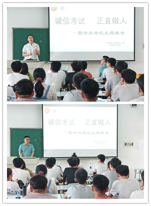 7月2日晚,材料學(xué)院2018級高分子材料與工程班在彭家坪校區(qū)觀成樓402教室開展“誠信考試,正直做人”主題班會,特別邀請材料學(xué)院副院長李慧、高分子材料與工程班班主任趙四祥老師參加,會議由輔導(dǎo)員陳亞紅主持。