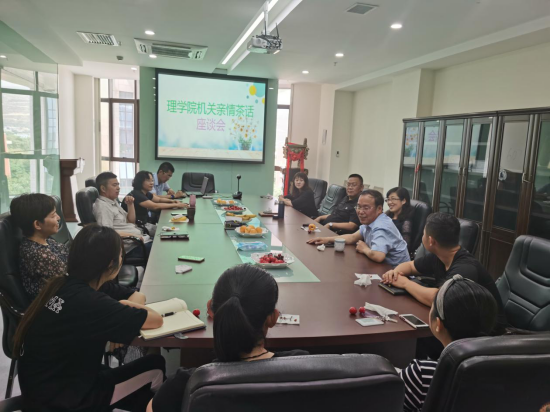 6月30日上午,理學院工會在圖書館607會議室開展學院機關親情茶話座談會,歡迎楊合立副書記到崗及學院學科學位辦主任王穎光榮退休。