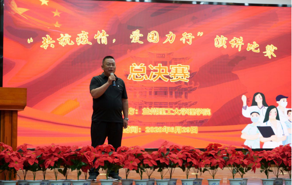6月29日下午15:00,由蘭州理工大學理學院團委及研究生會組織的“共抗疫情,愛國力行”主題演講比賽決賽在圖書館106報告廳舉行。校團委張忠源老師,理學院黨委副書記楊合立,團委書記安星,輔導員楊廷乾、趙倩倩老師,以及班主任王向賢、楊琳、楊帆、李旭、高偉等老師及校研會副主席梁家浩參加。
