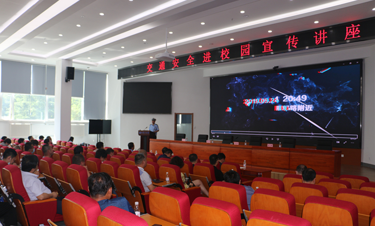 6月24日上午,后勤黨總支邀請蘭州市龔家灣交警大隊民警在蘭工坪校區圖書館報告廳舉行了“交通安全進校園宣講”主題黨日活動。龔家灣交警大隊副隊長周義基、中國人民財產保險公司蘭州分公司負責人何霞、后勤系統和保衛處相關負責人,黨總支全體黨員、后勤系統科級干部、學校大車班司機及部分校內駕駛員等70余人參加活動。