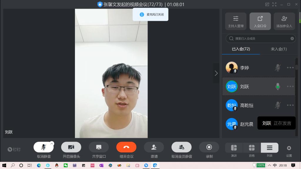 6月21日,電信學院2018級自動化2班組織開展“新時代呼喚新思想,新青年肩負新擔當”線上主題團日活動,活動由班級團支書主持,電信學院副院長李二超和班主任李婷參加活動。