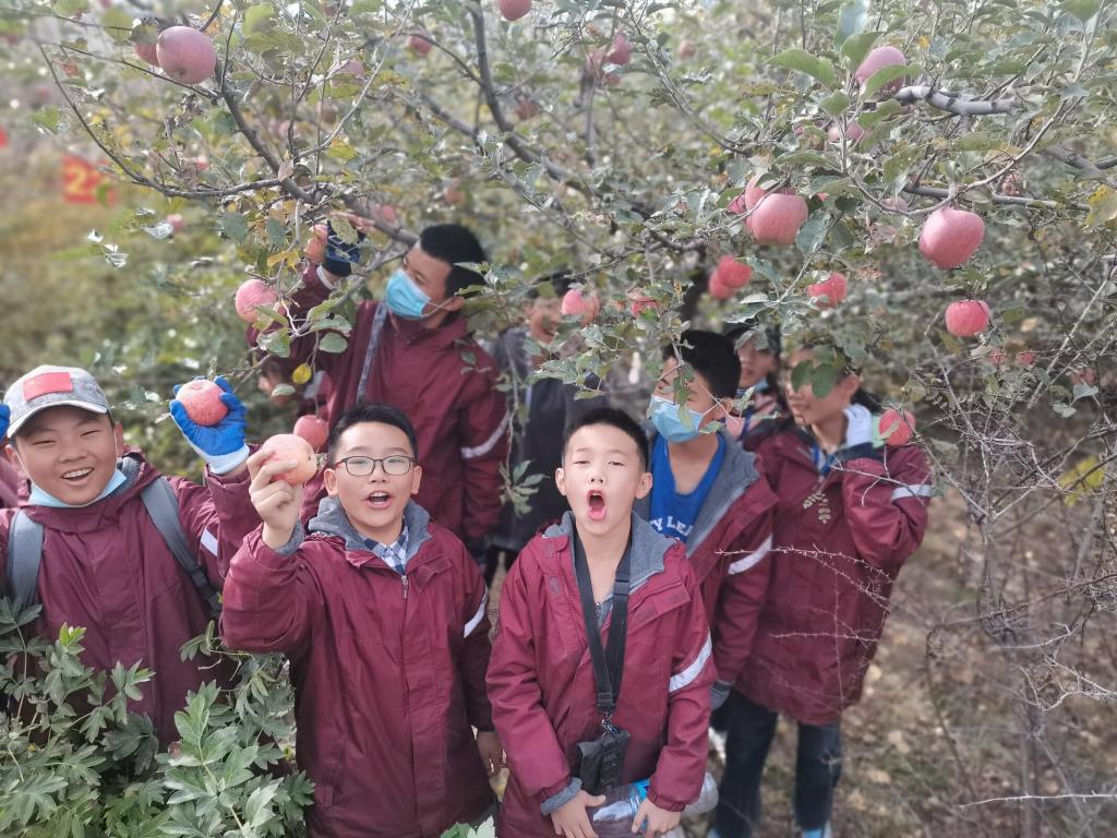 為豐富學生勞動體驗,感悟金秋收獲,2020年10月20日下午,附中組織初一、初二年級共七個班200余名師生,走進榆中和平牡丹園勞動實踐基地,開展主題為“碩果累累,夢想金秋”蘋果采摘勞動實踐活動。