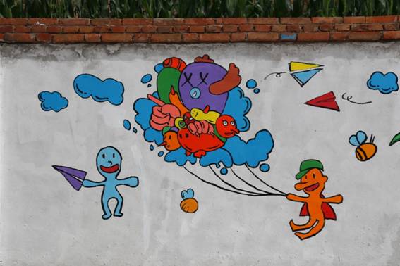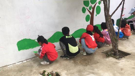 15日上午進村后,隊員們在駐村干部牛磊的引導下來到了奴拉芒小學,與汪校長簡單會面。汪校長對實踐團的到來表示衷心感謝,希望同學們帶來的不僅是漂亮的文化墻,更能夠與學校的學生們交流互動,增長知識、見識。當天下午,隊員們就開始動手進行墻面的處理,設計墻面內容。期間,隊員們不僅自己畫,還帶領小學的學生們一起畫,一起融入到這個“色彩繽紛”的世界。繪畫的同時,隊員們耐心地給小朋友們講社會主義核心價值觀的內涵,告訴他們遵守社會主義核心價值觀的意義。
