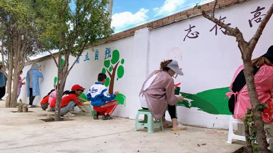 教育脫貧,我們在行動!2020年7月15日至7月20日,蘭州理工大學設計藝術學院“A·設計”團在帶隊老師馬俊的帶領下前往甘肅省臨夏回族自治州東鄉族自治縣奴拉芒村小學開展手繪文化墻暑期社會實踐活動。