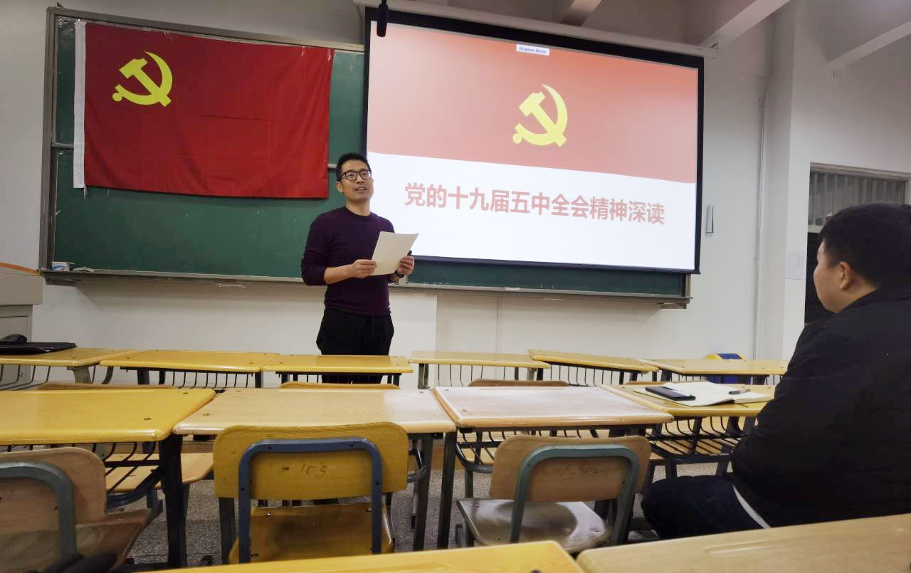 11月26日晚,蘭州理工大學經濟管理學院市場營銷本科生黨支部集中學習黨的十九屆五中全會精神,會議邀請馬亮老師為市場營銷本科生黨支部深度解讀十九屆五中全會精神。