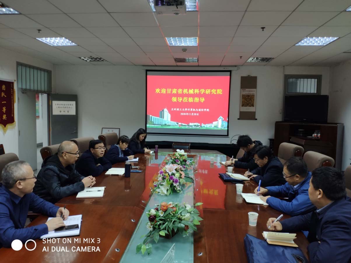 2020-11-2411月20日上午,甘肅省機械科學研究院總經理焦光聯、研發中心主任賀成柱、科技產業部長李曉康和信息中心宋苗銳等一行四人到計算機與通信學院開展交流座談。學院院長馮濤、黨委書記曾賢虎、副院長年福忠、王燕以及電信學院副院長包廣清、部分教師參加座談會。