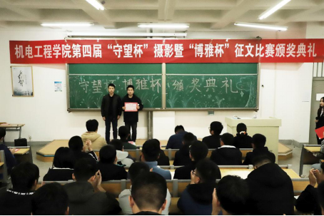 本次比賽本著“公平、公正、公開”的原則,對所有參賽作品進行評定,其中評委打分占70%,投票占30%,經過重重篩選評出最終的獲獎作品。主持人依照獲獎等級宣讀了獲獎選手名單,與會嘉賓為獲獎者頒獎、贈與獎品并合影留念。舉辦本次比賽旨在提升機電學院學子攝影、寫作能力,豐富學生課余文化生活,培養學生文藝興趣特長,對優秀攝影、文學作品的嘉獎,也是鼓勵全院同學積極參與校園文化活動,培養興趣愛好,提升綜合素質水平。