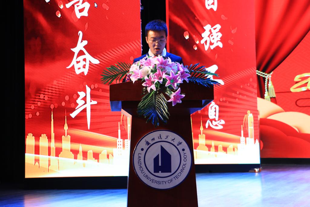 大會在莊嚴肅穆的國歌聲中拉開序幕。白楊宣讀了蘭州理工大學“關于表彰2019-2020學年國家獎學金、國家勵志獎學金獲得者的決定”“關于表彰2019-2020學年學生先進集體和優秀個人的決定”。張曉峰宣讀了“關于表彰蘭州理工大學2020年共青團先進集體和先進個人的決定”“蘭州理工大學2020年學生社團先進集體和個人的決定”“蘭州理工大學2020年心理健康輔導站先進集體和個人的決定”。許軍宣讀了蘭州理工大學新能源學院“關于表彰2019-2020學年先進集體及先進個人的決定”“關于表彰2019-2020學年獎學金的決定”。薛仰全宣讀了“關于表彰蘭州理工大學第十二屆電子設計競賽獲獎個人的決定”“關于表彰全國三維數字化創新設計大賽甘肅賽區獲獎個人的決定”“關于表彰甘肅省第四屆大學生物理競賽獲獎個人的決定”。蘭州理工大學新能源學院曹立宏宣讀了“關于表彰蘭州理工大學新能源學院第三屆電子設計競賽獲獎個人的決定”“關于表彰新能源學院第二屆‘3D打印’創意設計大賽獲獎學生的決定”。與會領導為先進集體和個人頒發了榮譽證書。隨即,由獲獎學生代表楊文濤同學上臺發言,他就善于學習、敢于擔當、敢于追夢、勤于圓夢四個方面表達了自身實際感受以及對大學學生生活的認知,并且號召同學們作為新時代的工大學子,要從母校艱苦奮斗的建設歷程中吸取 “不忘初心、牢記使命”的力量,以實際行動踐行“紅柳精神”,弘揚母校榮光。肩負起當代大學生的歷史使命并為學校推進雙一流建設添磚加瓦,為學院的發展貢獻青春和力量。