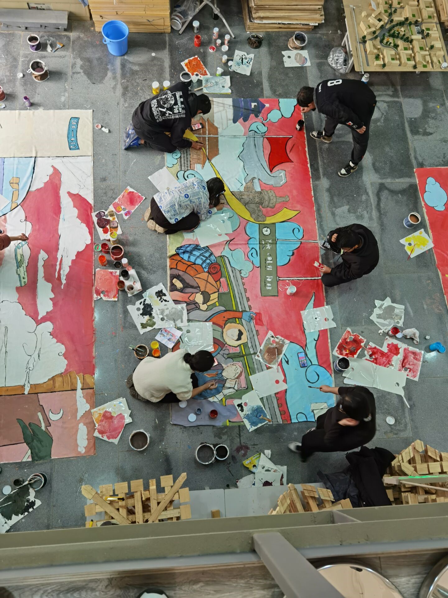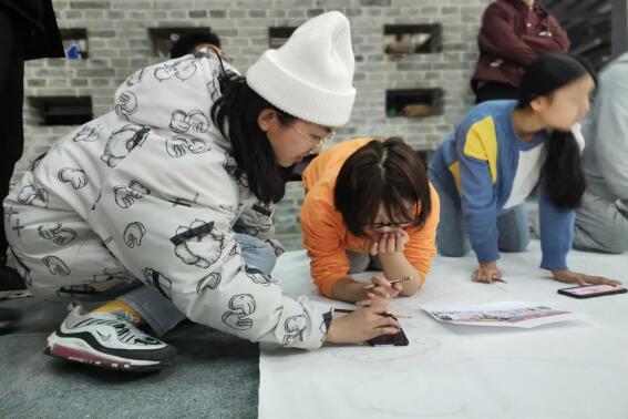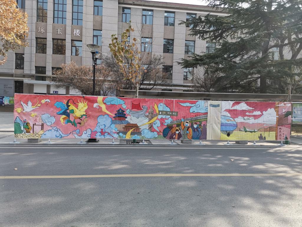 12月10日,設計藝術學院組織學生共繪的“百米長卷”在蘭工坪校區琢玉樓前展出,引來了同學們的圍觀。