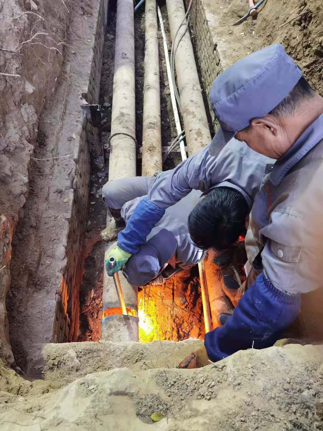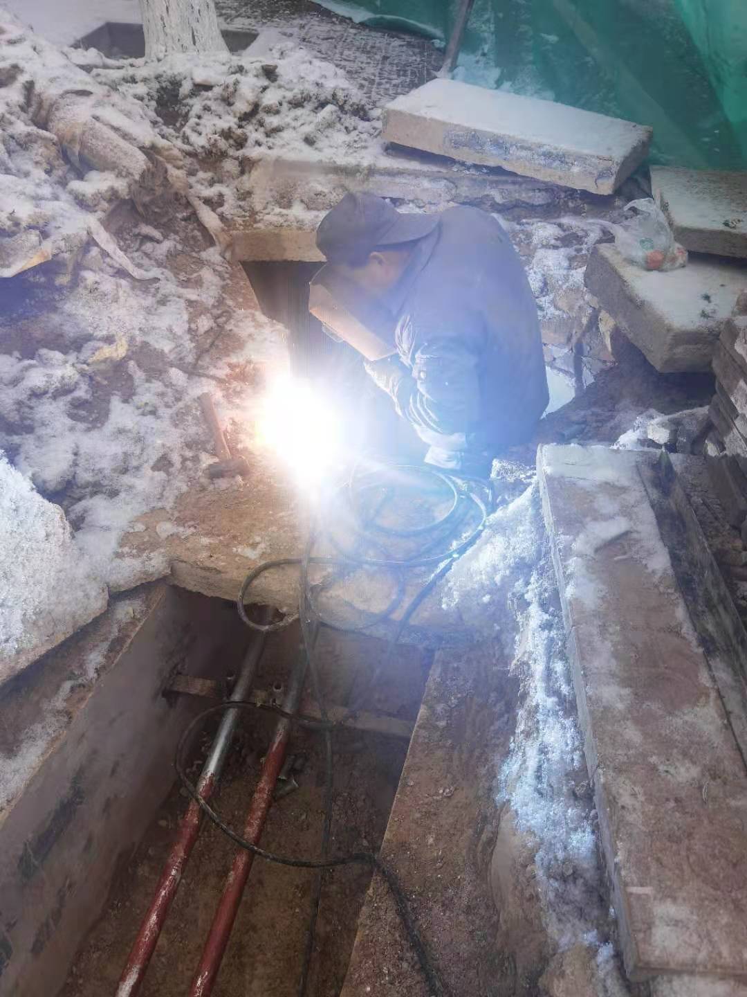 同時為保障供暖期間的安全穩(wěn)定運行,能源服務中心嚴格落實《供暖鍋爐、管網巡回檢查制度》,要求鍋爐房內部天然氣管道、鍋爐、燃燒機及輔機設備每2小時至少巡查一次。全校室外地溝管網在用水量正常的情況下每周至少巡查1次,水量過高時,立即做好記錄,組織管網巡查,并在發(fā)現漏點的第一時間組織搶修,自供暖至今,倆校區(qū)已組織正常巡查管網32次,臨時、連夜巡查管網25次,搶修室外地溝跑冒滴漏管道26處,室外地溝狹窄,而維修人員必須冒著管道里的熱水和蒸汽,強忍著呼吸、頂著高壓噴濺的熱水,進行爭分奪秒的搶修,往往一干就是幾個小時,從地溝里出來有的連腰都直不起,腿腳麻木到路都走不了,而這一切都是為了盡早的解決供暖漏水問題,不影響到廣大師生的冬季供暖。