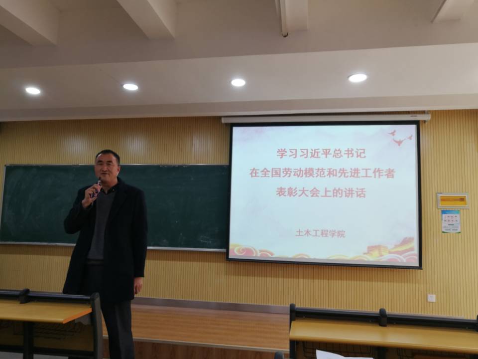 12月9日下午,土木工程學院黨委、學院工會在崇理樓301教室組織了學習貫徹習近平總書記在全國勞動模范和先進工作者表彰大會上的講話精神交流座談會。會議由學院黨委副書記王儀杰主持,學院組織員王耀武帶領大家集體學習了習近平總書記在全國勞動模范和先進工作者表彰大會上的講話。并邀請曾榮獲全國先進工作者、全國優秀教師、全國師德標兵榮譽稱號的杜永峰教授做了題為《不忘囑托,為西部培養防災減災人才持續努力》的交流發言。