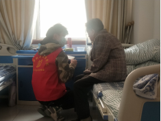志愿者們還前往敬老院去看望那里的老人,在敬老院里,志愿者們看到了許多的坐在門口的爺爺奶奶,仿佛每位爺爺奶奶也都期盼著志愿者們的到來。在負責人的安排下,每位志愿者認認真真地為老人們打掃了床頭柜的衛生,疊整齊了床被。收拾整理好老人們休息的地方后,志愿者們與爺爺奶奶們問好聊天。爺爺奶奶們給志愿者講自己年輕時的故事,在老人中有一位77歲的張奶奶與她的先生丁爺爺,丁爺爺在三十年前腿部截肢,一直都是張奶奶在細心照顧著爺爺,不離不棄。在與志愿者的聊天中,張奶奶一直重復著:"跟你們聊過后,我要好好活下去。"那一刻一切志愿活動都有了意義。在分別的時刻。張奶奶緊緊攥著志愿者的手,不舍地與志愿者們道別。志愿者們從爺爺奶奶身上了解了許多故事與道理,也在志愿服務中成長了自己。陪伴對每一個老人都是重要的,青年志愿服務隊的志愿者們一定會將志愿服務堅持下去。