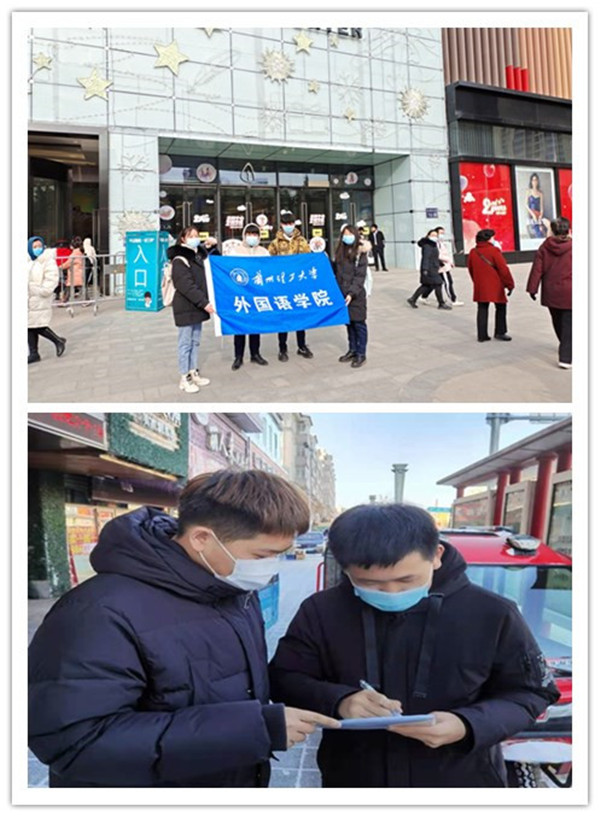 寒假期間,新冠疫情再次出現反彈,給人們敲響了警鐘。黨中央高度重視疫情防控工作在全國范圍內的落實開展,并組織進行了多次有關疫情防控工作的決策會議。外國語學院志愿者們也參與到疫情防控的行動中來,增強群眾的防疫觀念,凝結防控智慧。