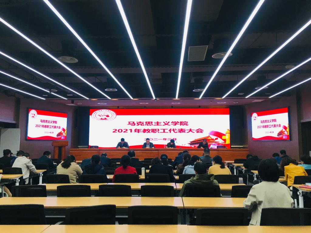 3月16日下午,馬克思主義學(xué)院2021年度教職工代表大會在西校區(qū)圖書館一樓報告廳召開,學(xué)院院長饒旭鵬、副院長朱長兵及全體教職工參加了本次會議,會議由學(xué)院黨委書記馬鳳英主持。