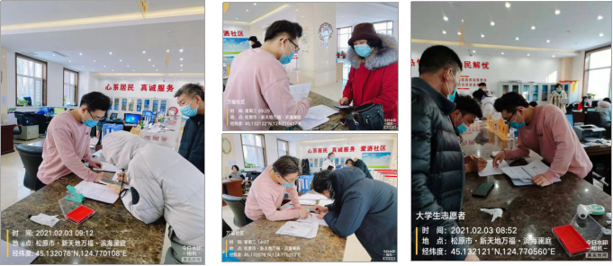 2021年2月3日,這一天潘國棟同學主要負責對返鄉人員進行信息報備。每一位來到大廳報備的住戶需要進行個人信息填寫,潘國棟同學將他們有效的核酸報告復印留檔,并簽署承諾書,主動填寫返松前近14天的行程信息,并收集他們的行程碼以及外省專用健康碼,打印留檔。最后告知每一位報備的住戶所在小區網格員的微信,備注好做不時之需,時刻了解社區疫情防控情況。