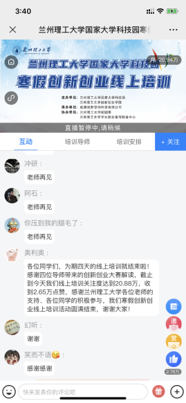 此次線上培訓直播間互動積極,氛圍活躍。同時得到了新浪、網易、今日頭條、中國網、中國周刊網、四川在線、四川之聲等新聞媒體報道。通過此次線上寒假培訓加深了學生對創新創業的認知和理解,豐富了寒假生活,激發了大學生的創新創業熱情,提升了大學生和園區入孵企業創新創業能力。