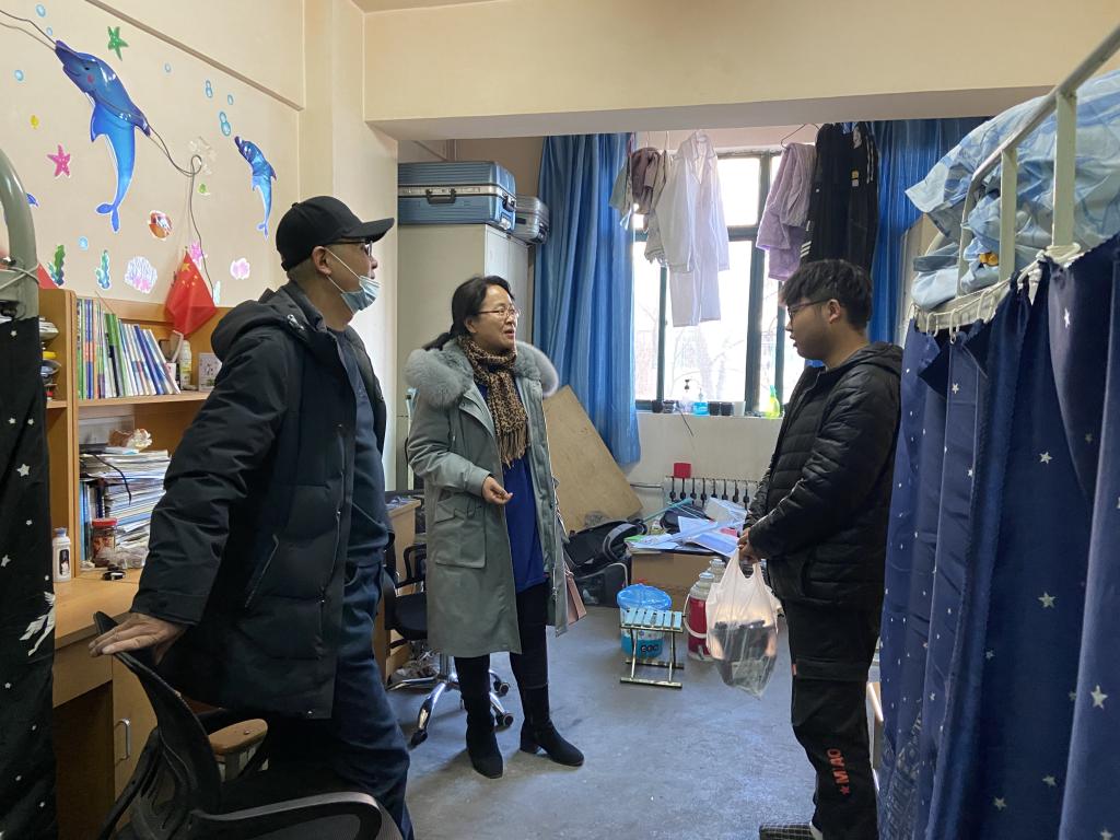 1月8日,河北省石家莊市對“兩站一場”采取最嚴格的管控措施,防止新冠肺炎疫情擴散。生命學院有2名本科石家莊籍學生不得已退票留校,不能及時返家。12日下午,為紓解這些同學的心理壓力,學院副書記武軍莉帶領所在班級班主任楊明俊老師和唐丹老師,前往彭家坪校區學生宿舍對因疫情滯留學校的同學進行慰問。她代表學院為同學送去了酸奶、方便面等慰問品,對同學們積極服從防疫、顧全大局的行動給予充分肯定,叮囑同學們合理安排時間,做好防護,注意個人安全,及時向老師溝通匯報。
