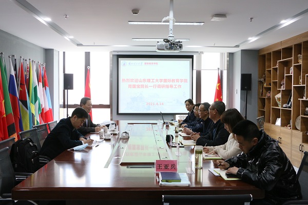 4月14日上午,山東理工大學國際教育學院副院長周國寶、學生工作辦公室主任付太東,就國際學生管理與服務、國際學生綜合素質測評等工作來校開展調研交流。學院班子成員及全體教職工參加調研座談。